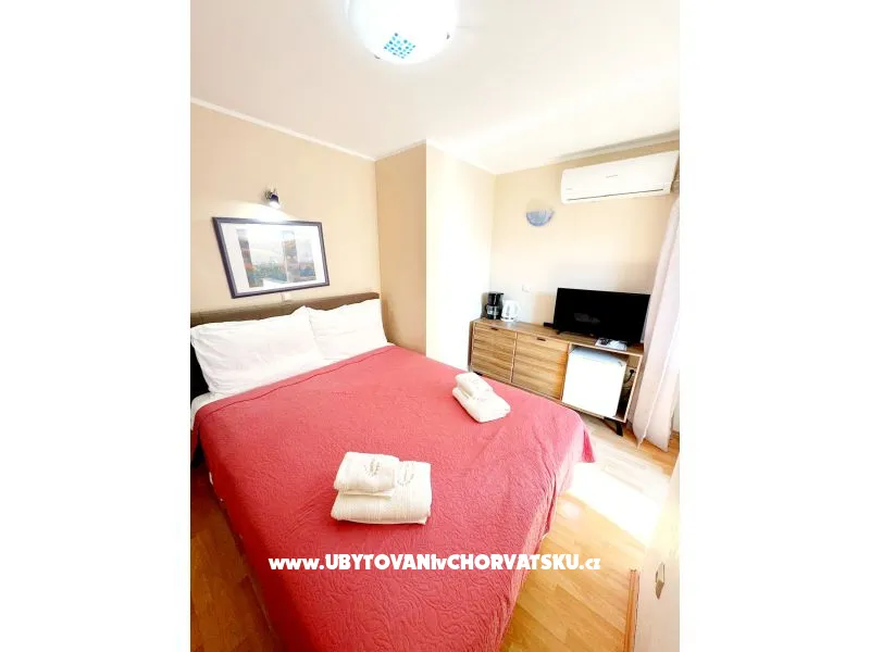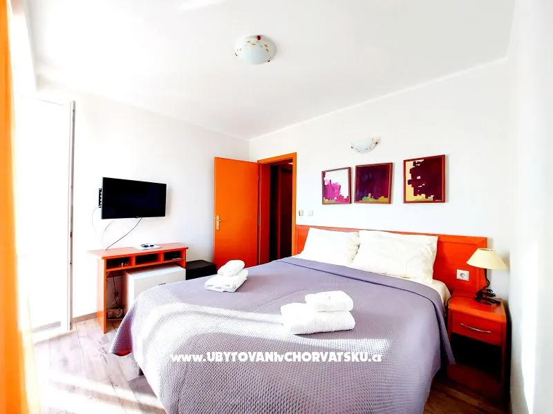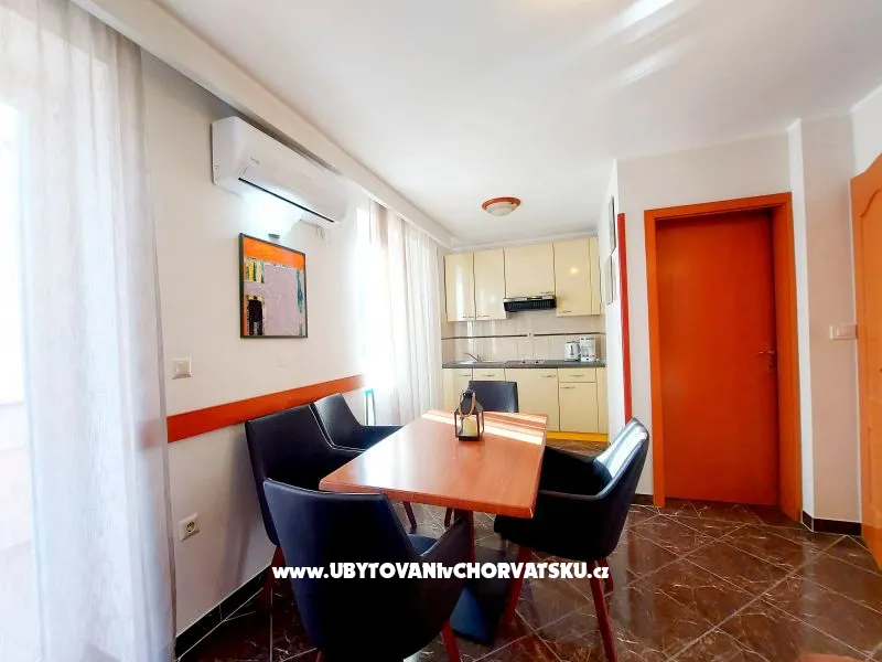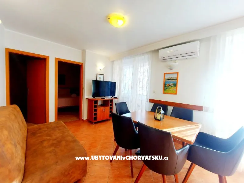 Apartment 2, with 3 stars, on the first floor, with a view of the sea, for 4+2 persons, 50 m2, with two bedrooms with double beds, kitchenette and sofa bed in the living room and one bathroom. The apartment has a balcony and a sea view.