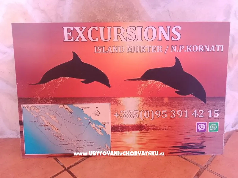 Apartments Mile are located on the island of Murter, town of Murter. Only 10m from the sea and only 40m from the city beach Luka. All three apartments are fully equipped with terraces overlooking the sea. Only 300m from the center of Murter. Each apartment has its own parking space. The apartments have free internet, air conditioning, TV, washing machine. We can also offer boat trips by motor boat for up to 12 people to the surrounding islands and the Kornati National Park, recreational diving. Transfer by car or van to Zadar or Split airport and back. We are at your service We speak HRV, ENG, GER