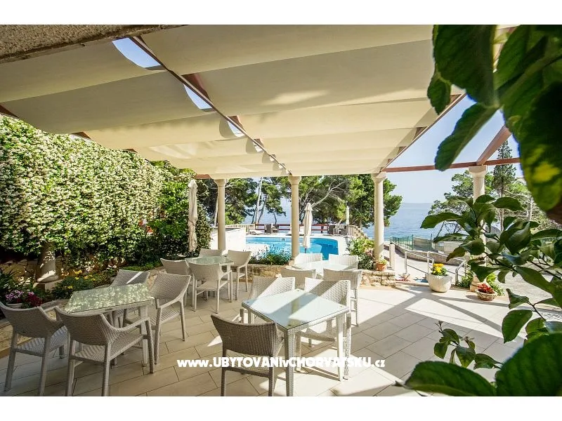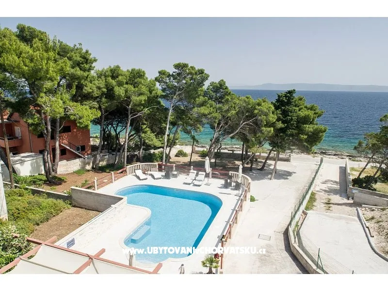The house with a private pool of 75m2, nine air-conditioned apartments and private free parking in the shade of a pine forest, is located in a quiet part of Sumartin with a beautiful view of the sea, the islands, Biokovo, Hvar and Pelješac. The facility is located right next to the beach, twenty meters from the sea and faces south. In total, nine air-conditioned apartments can accommodate up to 34 people. The apartments are divided into floors: four on the first floor and four on the second, while one is located on the ground floor. Depending on availability, we will offer you apartments that are available at that moment. Prices are lower in June and September, so feel free to contact us for offers for those periods. Washing machine available on request. Restaurants, coffee bars, supermarkets, post office and the town center are about 500 meters away. Accommodation on 1 floor: 1. Apartment 2+2: 50 m2, 1x bedroom with double bed, two beds/armchair in the living room, kitchen, bathroom, private terrace facing south; 2. Apartment 2+2: 50 m2, 1x bedroom with a double bed, two beds/armchairs in the living room, kitchen, modernized bathroom, private terrace facing south; 3. Apartment 2+0: 30 m2, 1x bedroom with double bed, living room, kitchen, modernized bathroom, private small balcony facing north; 4. Apartment 5+0: 70 m2, 2x bedrooms (a: double bed + bed for one person; b: double bed), living room, kitchen, bathroom, private terrace facing west. Accommodation on the 2nd floor: 5. Apartment 2+2: 50 m2, 1x bedroom with double bed, two beds/armchair in the living room, kitchen, bathroom, private terrace facing south; 6. Apartment 2+2: 50 m2, 1x bedroom with double bed, two beds/armchair in the living room, kitchen, modernized bathroom, private terrace facing south; 7. Apartment 2+0: 30 m2, 1x bedroom with double bed, living room, kitchen, modernized bathroom, private small balcony facing north; 8. Apartment 5+0: 70 m2, 2x bedrooms (a: double bed + bed for one person; b: double bed), living room, kitchen, bathroom, private terrace facing west. Accommodation on the ground floor: 9. Apartment 4+0: about 45 m2, 2x bedrooms (a: double bed; b: 2x single bed), modern kitchen, living room, bathroom with hydromassage, private terrace facing south. It is possible to accommodate up to 34 people in nine air-conditioned apartments. The apartments are divided on floors: four on the first floor and four on the other, while one is on the ground floor. Depending on the availability, we will offer you the apartments that are available at that moment. Prices are lower in June and September, so feel free to contact us for offers for those periods. In all apartments there is a new kitchen plate, a new workpiece and a new sink mixer, while the five apartments are completely redesigned; so apartments are modernized. The bathrooms in the other four apartments will be redesigned for the next (2020) season. There is a large common terrace in front of the pool with deckchairs, tables and chairs for enjoying the eye and in front of the pool. Washing machine available upon request. Restaurants, cafes, supermarkets, post office and center are about 500 meters away. Accomodation on the 1st floor: 1. Apartment 2 + 2: 50 m2, 1x bedroom with double bed, two beds / armchairs in the living room, kitchen, bathroom, private terrace facing south; 2. Apartment 2 + 2: 50 m2, 1x bedroom with double bed, two beds / armchairs in the living room, kitchen, modern bathroom, private terrace facing south; 3. Apartment 2 + 0: 30 m2, 1x bedroom with double bed, living room, kitchen, modern bathroom, private small balcony facing north; 4. Apartment 5 + 0: 70 m2, 2x bedrooms (a: double bed + single bed, b: double bed), living room, kitchen, bathroom, private terrace facing west. Accommodation on the 2nd floor: 5. Apartment 2 + 2: 50 m2, 1x bedroom with double bed, two beds / armchairs in the living room, kitchen, bathroom, private terrace facing south; 6. Apartment 2 + 2: 50 m2, 1x bedroom with double bed, two beds / armchairs in the living room, kitchen, modern bathroom, private terrace facing south; 7. Apartment 2 + 0: 30 m2, 1x bedroom with double bed, living room, kitchen, modern bathroom, private small balcony facing north; 8. Apartment 5 + 0: 70 m2, 2x bedrooms (a: double bed + single bed, b: double bed), living room, kitchen, bathroom, private terrace facing west. Ground floor accommodation: 9. Apartment 4 + 0: approx. 45 m2, 2x bedrooms (a: double bed, b: 2x single bed), modern kitchen, living room, bathroom with hydro massage, private terrace facing south.
