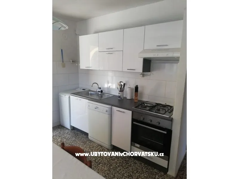 The apartment is located in the peaceful bay by the sea. The apartment has three double bedrooms, the kitchen is equipped with everything you need. Exiting the kitchen there is a covered area where is a table, chairs, satellite TV, and near the grill. Walking down the stairs you will pass the garden, flowers, children swing, outdoor shower and get to a door that separates us from the beach. At the beach is an umbrella with table and chairs, and the sun loungers. Right next to the beach it is possible to moor a small boat. As an addition, you can use a dishwasher and a washing machine. Each room has a TV, the bathroom has a hairdryer, and in front of the house there are 25m2 terraces with a bench table and chairs for use. All this is included in the price as well as air conditioning, sojourn tax, parking, internet. You can invite (please let us know) your friends on socializing or dining in the apartment for 1-2 hours and on the beach longer. Check-in to the apartment after 14 hours Departure from the apartment until 09:00 Surcharge 10 Euro for more than 4 adults in apartment. Apartment is for 4 adults and 2 kids.