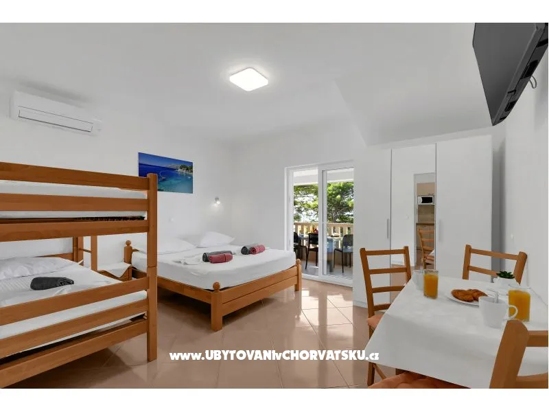 House with 13 apartments, located next to the beach, only stairs share from the beautiful pebble beach. The house has a large terrace with barbecue, which all guests can use. Guests have free parking and wi-fi.