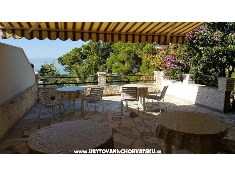House for rent, Brela Croatia rooms, Villa Sodan is situated 50 m from the beautiful pebble beach (seen on the picture) by the crystal clear Adriatic sea. The house Villa Sodan Brela Croatia has 5 rooms, a spacious living-room of 25 m?, kitchen of 16 m? and a terrace of 40 m?. The rooms are double, but they can by inserting additional cots easily convert into three bed rooms at your request. All rooms have a private ensuite bathroom. Rooms with bathroom are between 16 m? and 19 m?. Each room has its own table on the terrace. The living room is equipped with a big-screen TV with SAT system and computer with Internet access for personal use. At your request we can prepare and serve breakfast. For larger families or group visits you can rent two or more rooms (up to 5), in which case you will have your own kitchen, the idea being that the entire house (five rooms) can be converted into a big apartment where each room will still have its own bathroom ensuite. That being the case, we can rent you an apartment within our house with up to 10 or even 12 beds, its own kitchen and the above described living room (apartment house).The beach has a blue flag of the European Union indicating the level of cleanliness of the sea water and the beaches is up to highest standards. Our house Villa Sodan Brela Croatia is perfectly situated, bearing in mind that it is located only 400 m from the centre of Brela (5 to 10 minutes walk), 1,000 m from Baška Voda (10 to 15 minutes walk), 200 m from the Berulia hotel, 15 m from the supermarket (opened from 07:00 till 21:00) and 150 m from the nearest restaurant. There is a large parking-lot in front of our house, so each room has its own parking place. In view of all of the above, you can easily conclude that in our villa in Brela, you can spend a quality vacation without even using a car. If you really want to have a good rest, your first choice should be a room with a private bathroom ensuite with an access to kitchen where you can prepare your own breakfast or order it from us and consume it on the terrace with a beautiful sea-view, whereas in the evening you can eat in one of the prestigious restaurants in Brela or Baška Voda. Thank you for visiting our web pages and we hope that you will visit us and enjoy our pleasant accommodation and natural vistas that only Brela can offer. And do not forget - Brela are blessed with a 5 km long stretch of pebble beaches with beautiful and well-light promenade stretching along the entire beach. For more information, please contact us via email.
