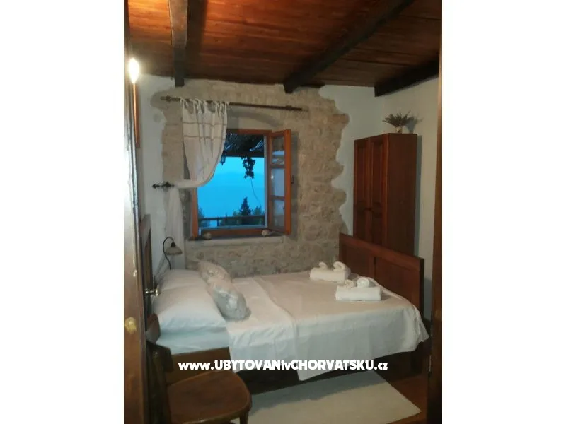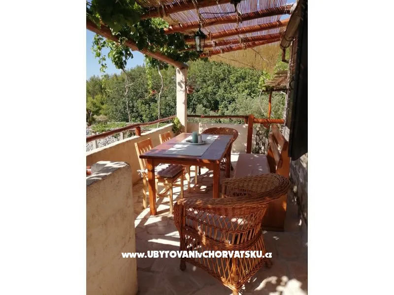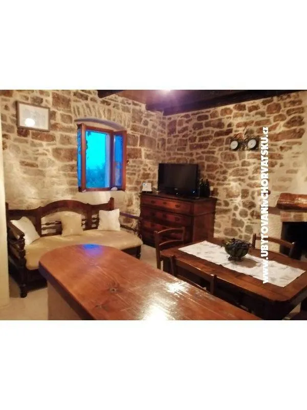 If you want to spend your vacation far away from noise and crowds and want really to rest, visit Gromin Dolac and our authentic Dalmatian stone house. Gromin Dolac is a settlement on south side of the island of Hvar, below which there are series of perfectly clean azure blue beaches. Gromin Dolac is only 3 km from the bigger tourist settlement Zavala. Zavala can be reached through the small tunnel from the village of Pitve. In the same time, Gromin Dolac is located in the middle of the island as an excellent base to explore the whole island . Our stone house is more than hundred years old but it has been renovated to satisfy modern living, using natural materials like stone and wood as much as possible. House consists of kitchen with dining room and living room with fireplace (barbecue) ,two bedrooms, storage space, hallway and bathroom with shower. In front of the house is large terrace with beautiful sea view of islands Ščedro, Korčula and peninsula Pelješac, parking place and patio. It is suitable for a family with children. You need 10 min. by walk to the nearest beach.