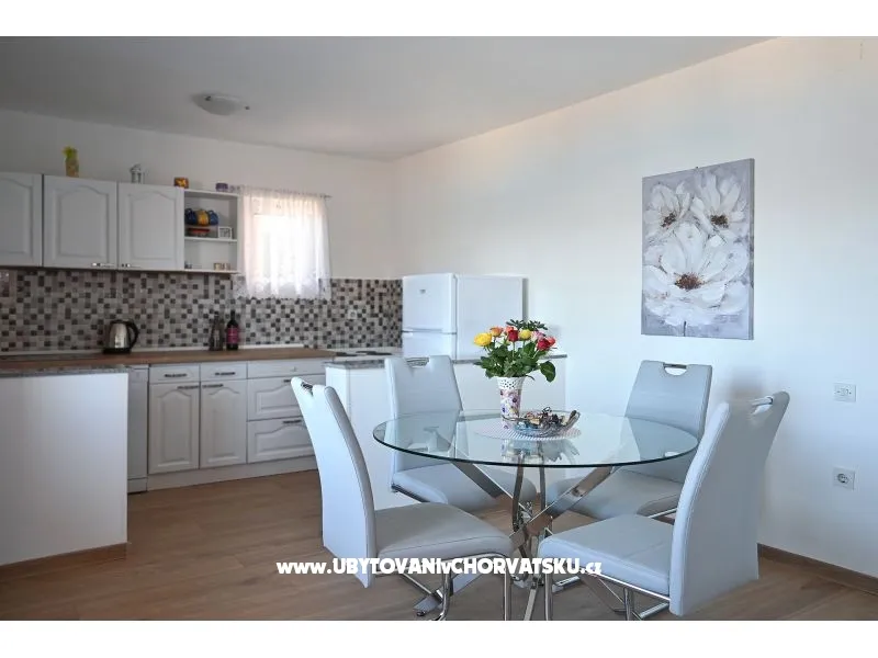 You pay 35% deposit + reservation fee per reservation. The rest is paid upon arrival at the facility. The minimum stay is 5 nights in the high season (July and August). Check-in is from 2pm; Check-out until 10 am. Apartment Radelic is located 150 m from the beach (type of beach: concrete, pebble). It has 1 private balconies / terraces with a sea view and 1 with a garden view. There is an additional barbecue area, with a kitchenette and an outdoor shower in front of it. The area is shared with the owners. Baby cot-on request. Outdoor facilities: outdoor grill, car access, private parking, garden, outdoor shower