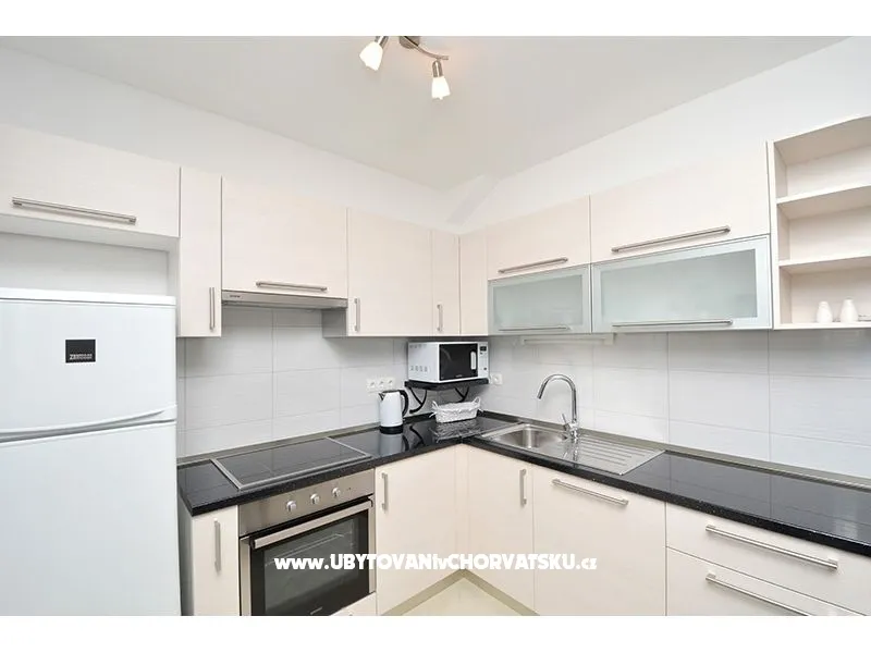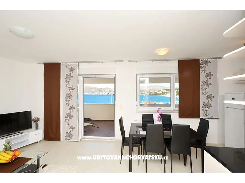 You pay 35% deposit + reservation fee per reservation. The rest is paid upon arrival at the facility. Minimum stay is 3 or 4 nights, depending on the time of year, departures and arrivals possible every day. In high season the minimum stay is 7 nights, arrivals / departures on Saturdays. 10% discount for stays of 15 nights or more. Check-in is from 2pm; Check-out until 10 am. Apartments Palm beach are located 10 m from the beach (type of beach: pebble). All apartments have a private terrace with a sea view. Baby cot and high chair - on request. Outdoor facilities: outdoor grill, access to the building by car, private parking, garden, outdoor shower, 4 deck chairs and 2 umbrellas per apartment (can be taken to the beach).