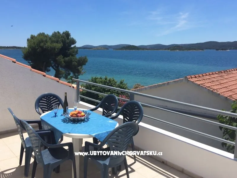 Private accommodation in 3 apartments for rent. 2 apartments 40m2 on the first floor, each for 4 persons and 1 apartment 60m2 on the second floor for 6 people. Each apartment has a balcony / terrace, TV, kitchen, bathroom ... Parking in the backyard, grill. House is 20 m from the sea and beach.Wi-Fi internet.