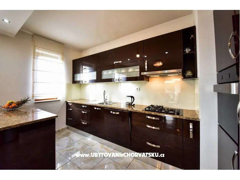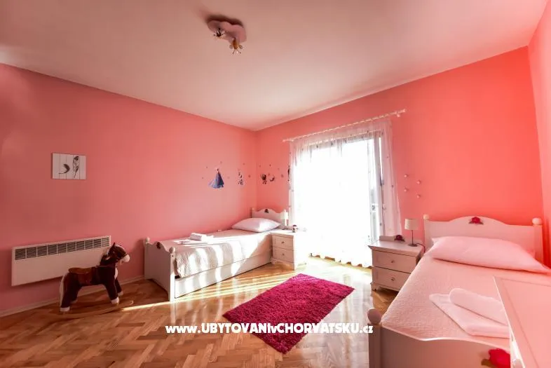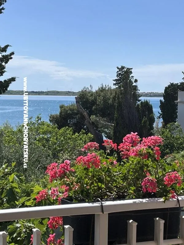 Apartment on the first floor of a family house, 20 m from the beach, air-conditioned. Modernly furnished, with fully equipped kitchen with dishwasher and oven, living room, terrace with sea view. Free WIFI. 2 bedrooms, bathroom with washing machine, separate toilet. Large yard with parking, grill.