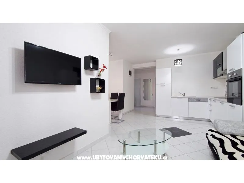 Apartments 5 & 7 (2 + 2): One bedroom with double bed, kitchen and living room where there's a expandable bed that sleeps two people. There is also a bathroom with shower and a terrace with a view