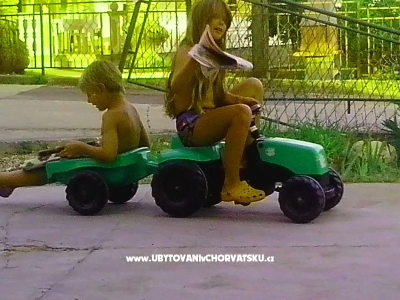3 bedrooms, living room, kitchen, 2 x toilet + shower, covered terrace and sea view. It's upstairs, with a separate entrance. Parking in the yard. Suitable for 1/2/3 of the family. Deck chairs in the garden, swimming pool for children <10 years and grill