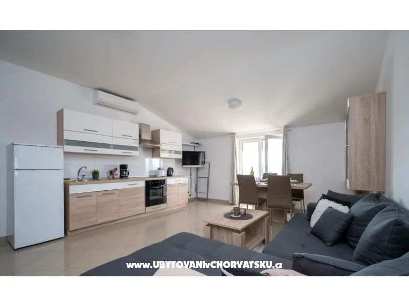 Apartments Manuela in Ljubač near Zadar are located 600 meters from the town center, only a 5-minute walk away from a shop, a cafe on the coast and several sandy beaches. The house has a total of 8 apartments for rent, free parking and swimming pool