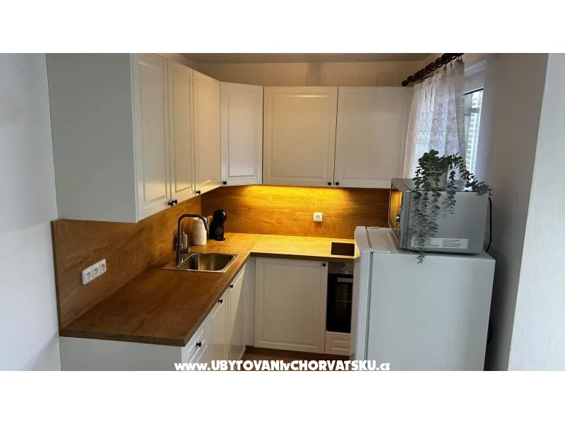 We offer accommodation in two separate apartments, each with an area of ??78m˛, one on the ground floor and one on the first floor. Each apartment has 3 bedrooms, an equipped kitchen and a bathroom. We have tried to create accommodation for you in which you will feel at home. Visit us on the island of Vir and judge for yourself. We are already looking forward to your stay. Katka & Jakub.